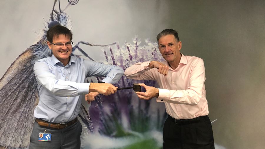 Tijdens de laatste vergadering van de Raad van Bestuur overhandigde Hans Feenstra de voorzittershamer (uit 1887!) officieel aan zijn opvolger André Postema (zie foto).