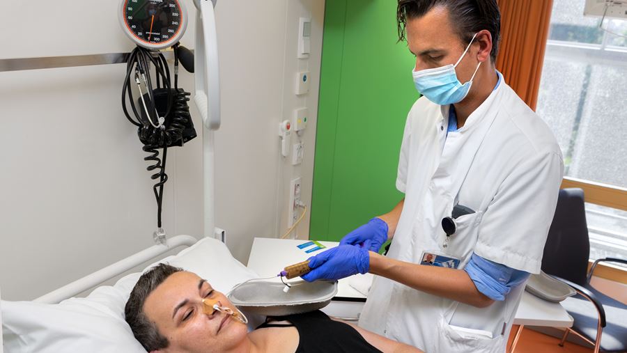 Liesbeth Huberts, 38 jaar uit Oldekerk, kreeg de behandeling. ‘Ik vond het spannend, maar keek er ook naar uit. De steeds terugkerende infectie en de bijbehorende klachten belemmeren mij erg in mijn leven. Ik heb weinig energie, voel me slapjes, en durf bijna het huis niet uit als ik niet zeker weet dat er een wc in de buurt is.’ Toen Liesbeth voor het eerst hoorde van de mogelijkheden van een poeptransplantatie wilde ze er graag meer over weten: ‘Het is wel een beetje een raar idee natuurlijk, dat je poep van een donor in je darmen krijgt. Maar die gedachten heb ik gauw losgelaten. Dokter Vlasveld vertelde enthousiast over deze behandeling en de mogelijke resultaten. Daar houd ik me aan vast. De toediening is me erg meegevallen. Via een sonde door mijn neus werd het materiaal rechtstreeks in mijn dunne darm gebracht. Nu is het afwachten en hopen op het gewenste resultaat.’