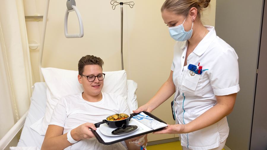 patiënten zijn; ze voelen zich echt verrast en verwend door de nieuwe maaltijden. Ook de uitbreiding van het aantal eetmomenten van drie naar zes keer dag is een succes: patiënten geven aan dat zij hierdoor minder moeite hebben met eten. We verwachten dit voorjaar het nieuwe concept op alle verpleegafdelingen te gaan invoeren. Daar kijken we naar uit.'