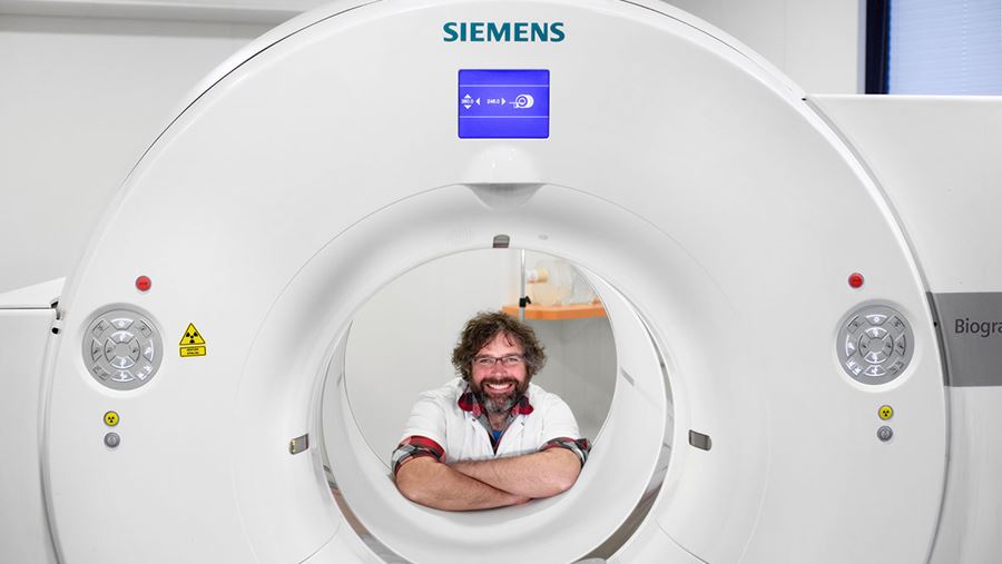 foto: Klaas Pieter Koopmans, nucleair geneeskundige, bij een PET CT-scanner in het Martini Ziekenhuis