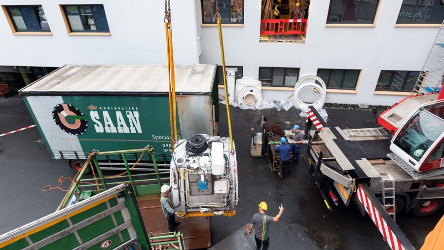 Het zes ton wegende apparaat werd met behulp van een hijskraan via een gat in de gevel op zijn plek gezet. De komst van de nieuwe MRI-scanner betekent een flinke vergroting van de capaciteit en dus een kortere wachttijd voor onze patiënten. Deze MRI-scanner is voorzien van de nieuwste software. Met dit apparaat is het mogelijk om zeer gedetailleerde beelden van het menselijk lichaam te maken. Dat helpt de arts om beter en sneller de juiste diagnose te kunnen stellen.