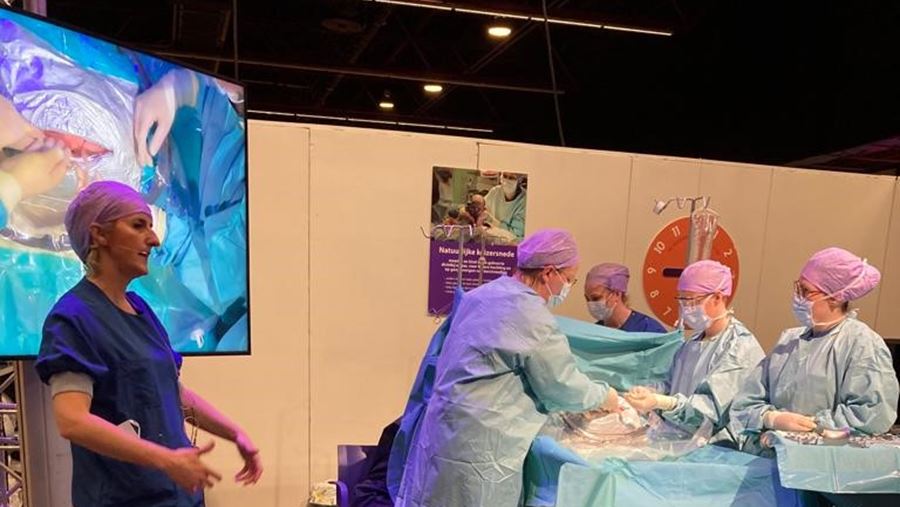 De publiekstrekker was de demonstratie van de natuurlijke keizersnede (huid-op-huidkeizersnede). 'De show van het OK-team', aldus een Belgische bezoeker. Iedere 45 minuten lieten we zien hoe de natuurlijke keizersnede in het Martini Ziekenhuis in z'n werk gaat.