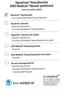 - Recept Naso Free neusdouche. Voor de bevordering van de genezing adviseren wij een neusdouche aan te schaffen bij de apotheek. Dit is voor eigen rekening.
