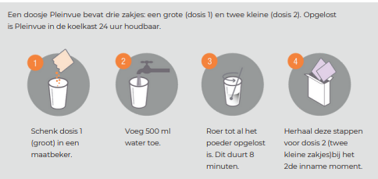 Stap 2: Laxeerschema Pleinvue - De avond voor het onderzoek start u met het drinken van voorbereidingsmiddel Pleinvue.