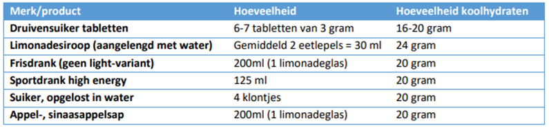 Het is belangrijk om tijdens een hypo eerst alléén glucose (de snelwerkende suikers, zie tabel 2) te nemen, omdat het anders te lang duurt voordat de bloedglucose stijgt. Wanneer de bloedglucose te langzaam stijgt, komt het lichaam namelijk zelf in actie. Dit heet hormonale tegenregulatie. Het lichaam brengt dan de gehele voorraad suiker, die ligt opgeslagen in de lever en in de spieren, in één keer in het bloed. Dit kan weer leiden tot een te hoge bloedsuiker.