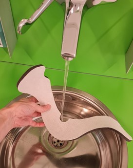 - Leg deze hierna op een schone en droge handdoek en klop het overtollig water er voorzichtig af. Leg de bekleding vervolgens op een schone en droge tafel om aan de lucht te drogen. Doe de bekleding nooit in de droger.