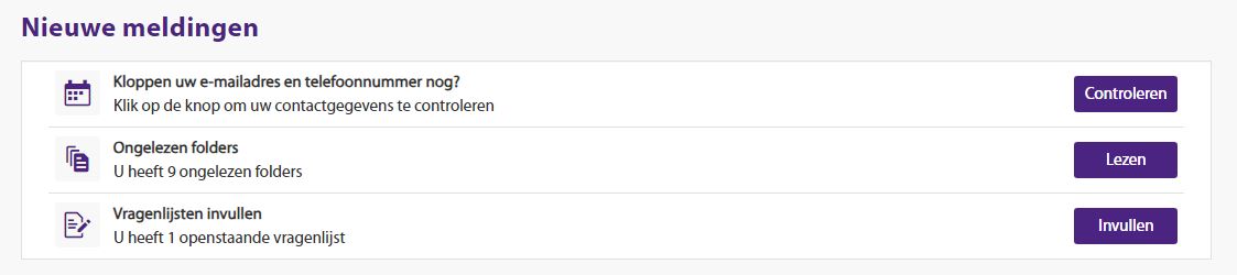 - Uw persoonlijke gegevens, gegevens van zorgverleners en uw contactpersonen staan bij Mijn Gegevens