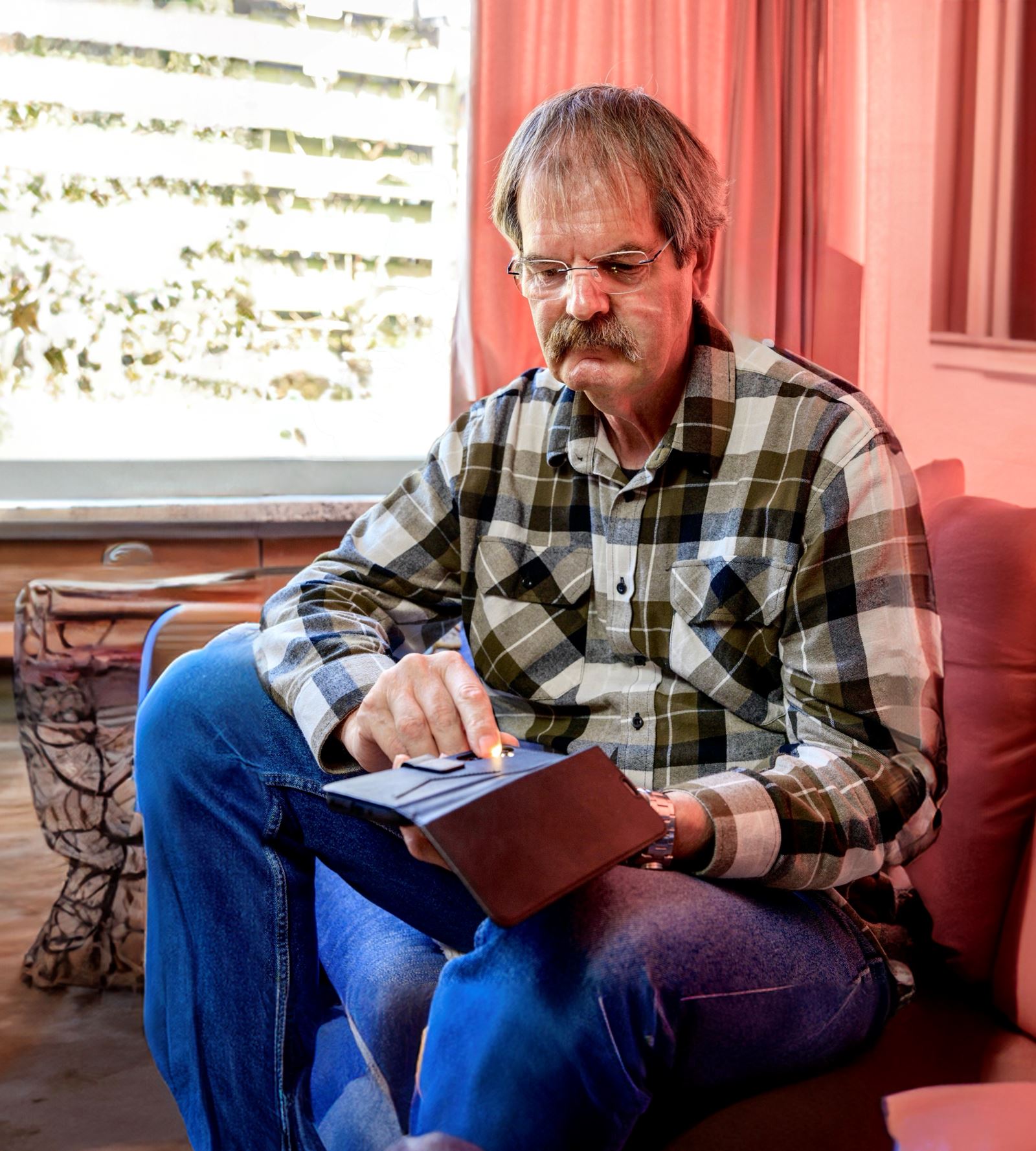 ‘Zo’n meting doe ik met de camera van mijn telefoon. Die leg ik met het scherm naar beneden op tafel. Het topje van mijn wijsvinger plaats ik op lens. Zo wordt de meting verricht. Dat duurt ongeveer anderhalve minuut. Via de app hoor ik dan of het gelukt is. Ja, de techniek staat voor niks. Heel bijzonder dat ik zo mijn hartritme kan doorgeven. Het geeft mij een veilig gevoel dat er zo altijd op mij gelet wordt. Ook prettig is dat ik nu niet meer zo vaak naar het ziekenhuis hoef.’