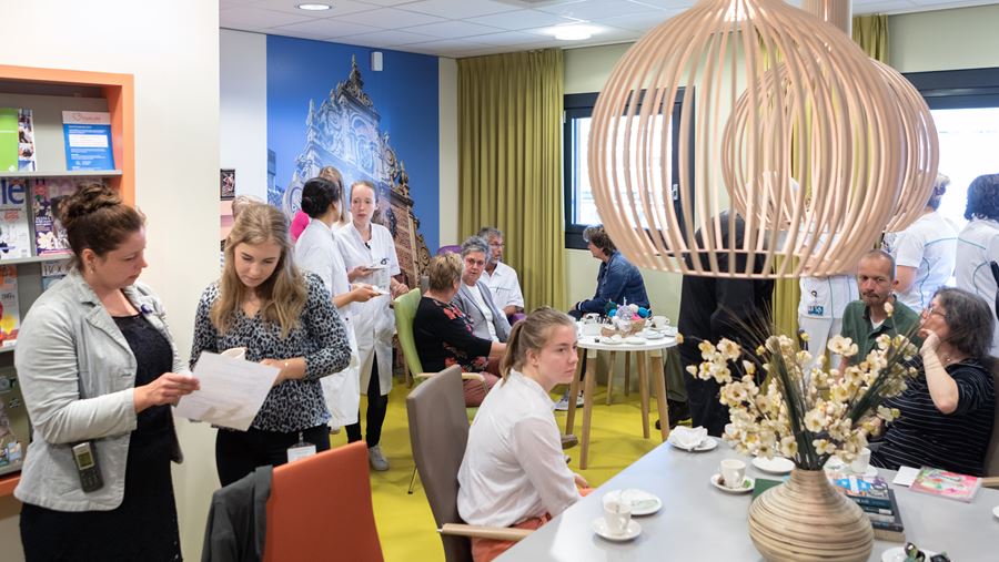 Twee jaar geleden is op de verpleegafdeling Interne Geneeskunde en Geriatrie een huiskamer in gebruik genomen. De ervaringen zijn positief. Marleen Keizer, adviseur Geriatrie: ‘Patiënten die in aanmerking komen voor begeleiding in de huiskamer, komen uit bed, trekken hun dagelijkse kleren aan en zijn een dagdeel actief bezig. Dit voorkomt desoriëntatie en verlies van spierkracht en geeft hun vertrouwen dat het thuis ook weer zal lukken.’