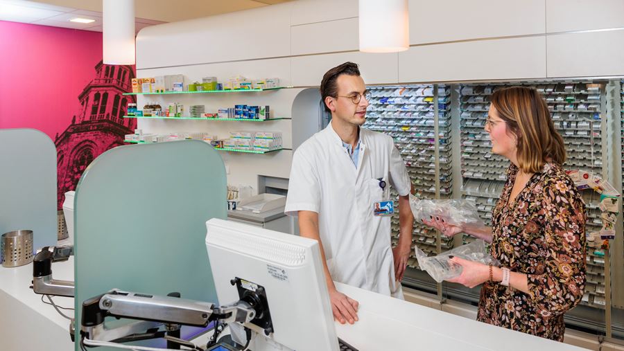 Manon Bakker, apotheker in de poliklinische apotheek, is lid van het OPAT-team. ‘Het is voor patiënten heel fijn dat zij de intraveneuze antibiotica in hun vertrouwde omgeving kunnen krijgen. Daardoor kunnen zij bijna al hun activiteiten thuis weer oppakken. Ik ben in dit proces met name verantwoordelijk voor de praktische zaken. De arts of afdeling meldt de patiënt bij ons aan; dan kijken wij welk soort infuus geschikt is. Dit infuus bestellen we, zodat de patiënt op de dag van ontslag het infuus met antibiotica bij ons kan ophalen. Deze manier van werken heeft - na een voorzichtige start - een enorme vlucht genomen. In 2021 hebben 136 patiënten gebruik gemaakt van intraveneuze antibiotica in de thuissituatie; deze patiënten hebben daardoor niet in het ziekenhuis hoeven te liggen.’