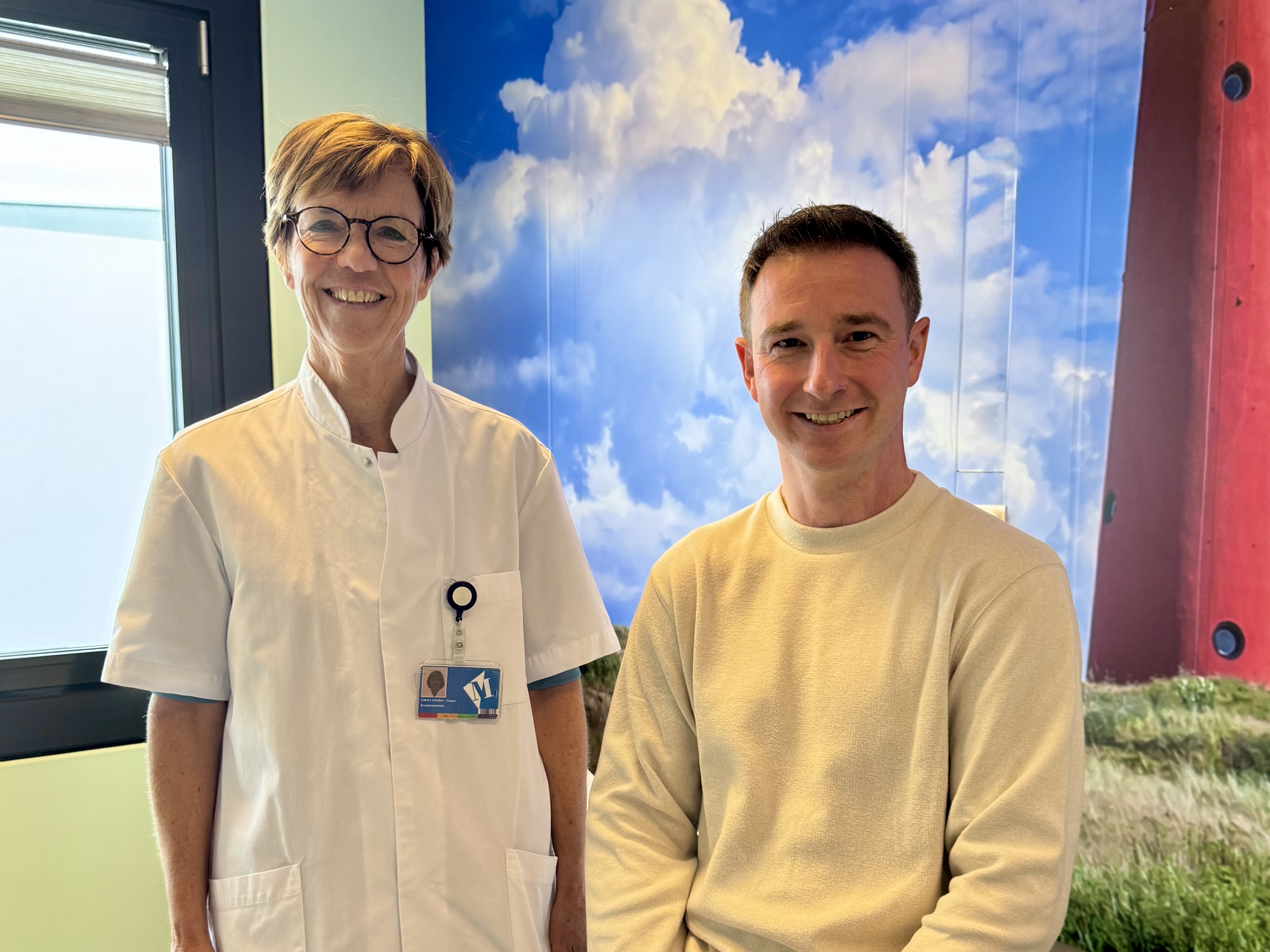 Laurens (36) is één van de patiënten die recent in het Martini Ziekenhuis een laserbehandeling heeft ondergaan. In 2019 liep hij tijdens een bedrijfsongeval brandwonden op aan zijn borst, arm en hals. Om iets aan zijn littekens te doen, kreeg hij onder meer huidtransplantaties. Ook onderging hij meerdere littekencorrecties, waarbij een deel van het litteken werd verwijderd. Dat had niet het gewenste effect. Inmiddels heeft hij drie laserbehandelingen ondergaan. Het effect moet nog doorwerken, maar toch merkt Laurens al verschil. ‘Eerst zag mijn omgeving het en nu begin ik het zelf ook te zien. Het reliëf van het litteken wordt minder, mijn litteken krijgt meer de kleur van mijn huid. Waar mijn huid op spanning staat, voelt het litteken ook soepeler.’