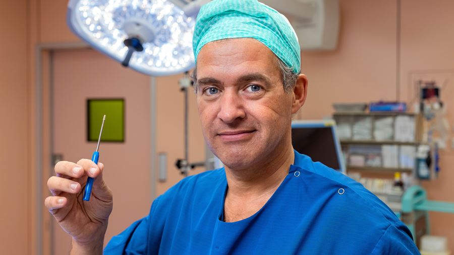 Marius Kemler is hand- en polschirurg. Hij legt uit hoe het werkt: ‘Met behulp van een kijkoperatie kunnen we bandletsel in de pols vaststellen waar dat vroeger onzichtbaar bleef. Vervolgens kunnen we een pees uit een ander deel van het lichaam gebruiken om de gescheurde band in de pols te repareren. Door een nieuwe techniek zetten we de pees daarna vast met botankers. Je kunt een botanker vergelijken met een soort kurkje. De pees gaat in een boorgat en de ‘kurk’ klemt hem dan muurvast zodat er direct een stabiele verbinding ontstaat. Het belangrijkste voordeel is dat de patiënt door deze techniek direct kan beginnen met oefenen en bewegen van de pols. Zo blijven de spieren en het gewricht soepel. Vroeger ging de pols na de operatie in het gips om de pees goed te laten hechten. Dat was niet ideaal, want als je de pols niet kan bewegen door het gips, worden de spieren stijf. In het ergste geval zorgde dat voor blijvende schade en verminderd gebruik van de arm.’