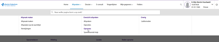 In de oproepbrief leest u meer informatie over uw opname, nuchter zijn en advies rondom gebruik van medicatie. U ontvangt de oproepbrief digitaal via Mijn Martini. Klik in Mijn Martini op de volgende knoppen: