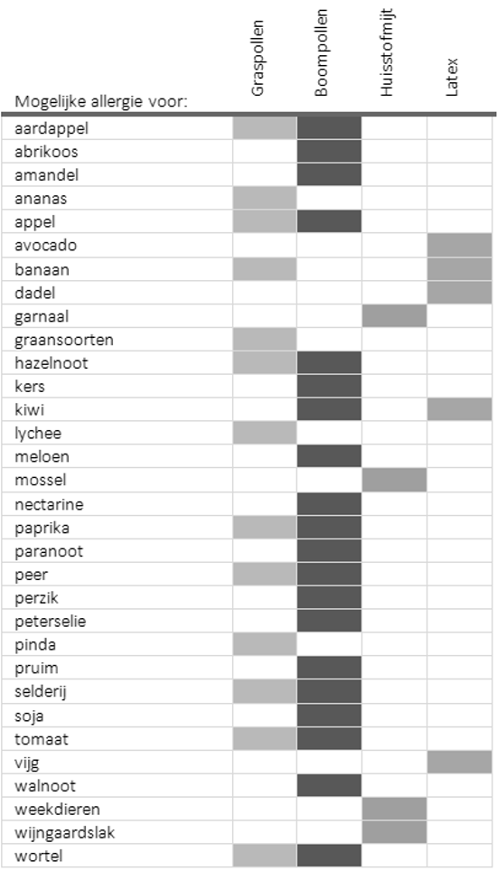 - Enkele adviezen bij een kruisallergie worden hieronder beschreven. Let op: dit zijn algemene adviezen. De kinderarts en allergiediëtist geven persoonlijk advies.