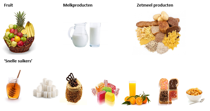 - Probeer maximaal 15 gram koolhydraten voor een tussendoortje aan te houden. Bijvoorbeeld: